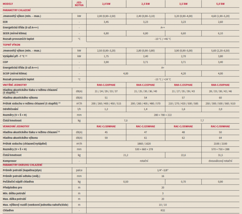 - Výkon chlazení / topení: 2,0 / 2,5 kW