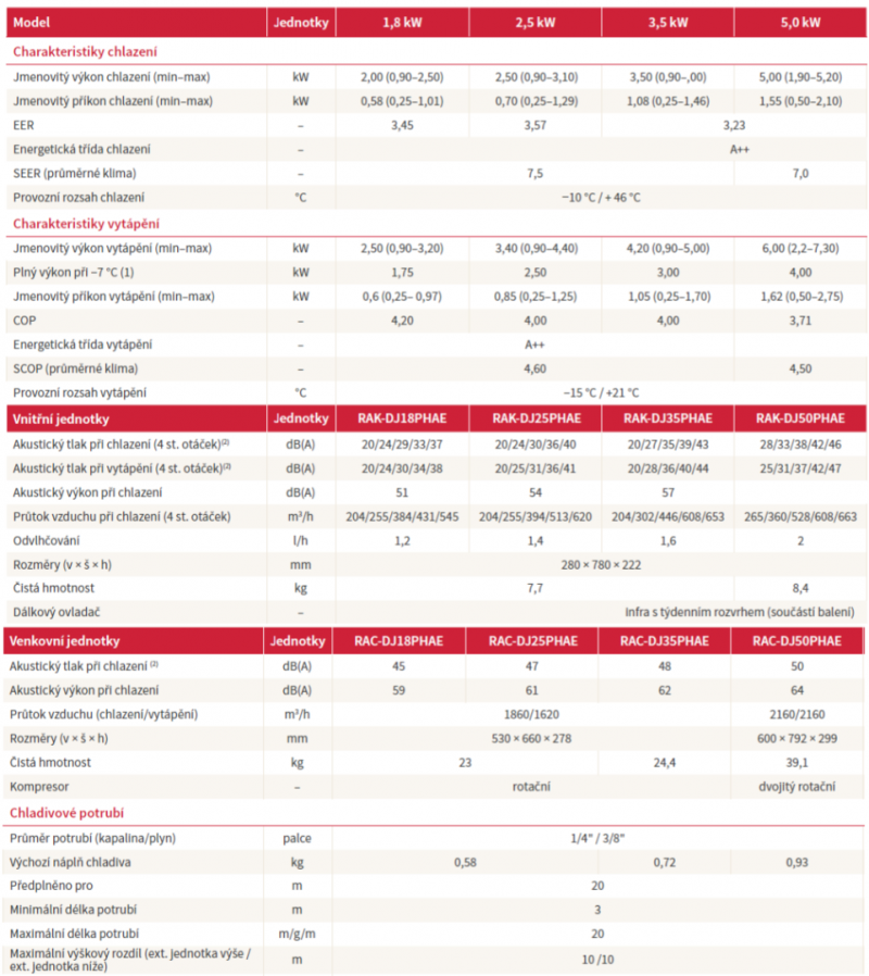 - Výkon chlazení / topení: 2,5 / 3,4 kW