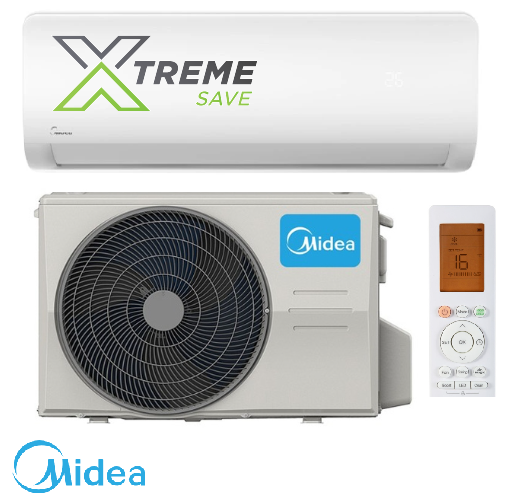 Základní sestava klimatizace Midea. Hlučnost vnitřní jednotky od 22 dBA a více dle zvoleného režimu ventilátoru. Split invertorová technologie s chladivem R32. Provedení vnitřní jednotky bílá a černá.