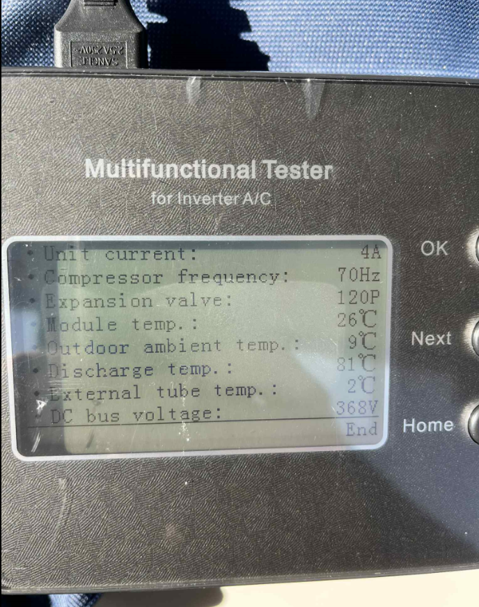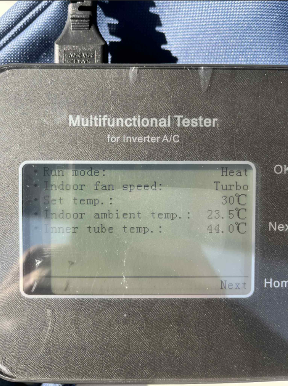 - Měření teploty v režimu chlazení a topení, kontrola elektro.